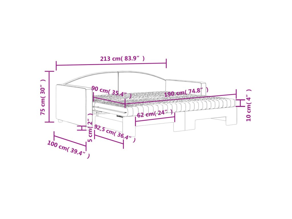 - Rozměry pěnové matrace (každá): 90 x 190 x 10 cm (Š x D x T)