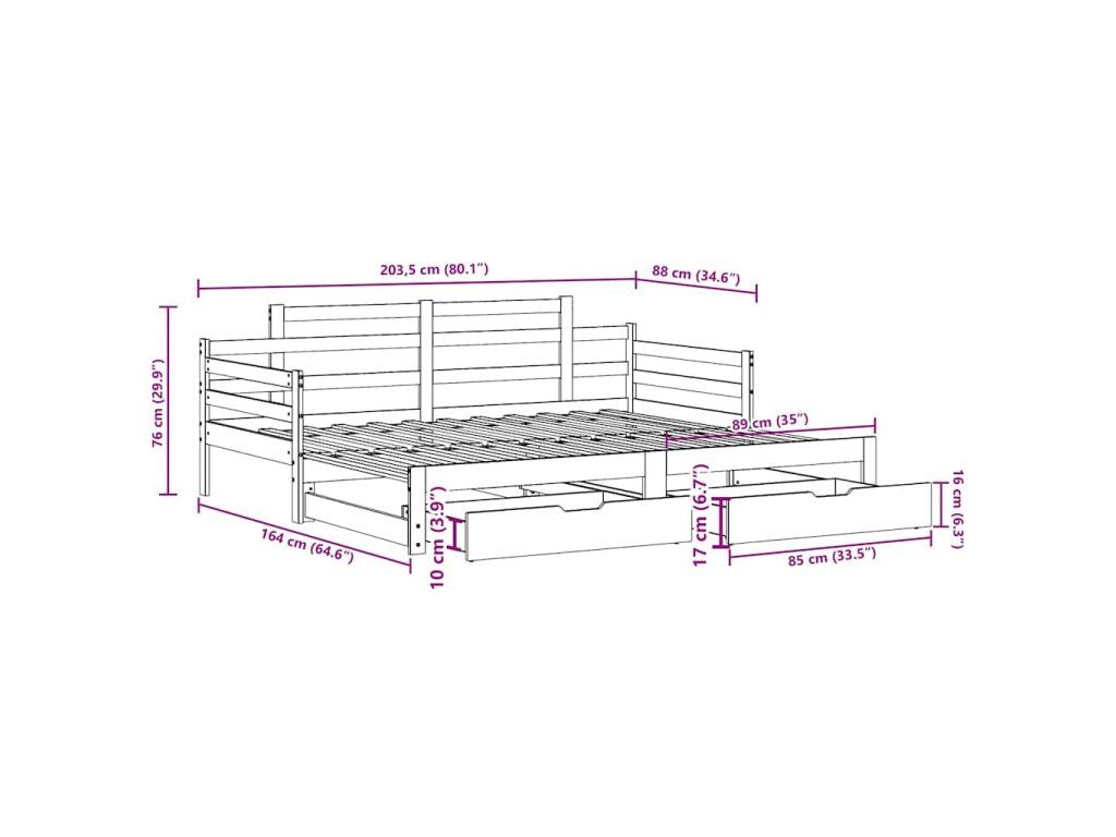 - Rozměry (nevysunuté): 203,5 x 88 x 76 cm (D x Š x V)