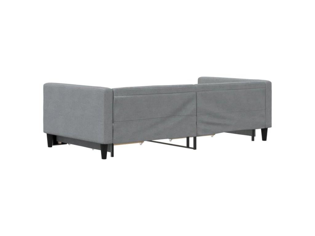 - Odolná tkanina a pevná konstrukce: Tato válenda má robustní rám ze dřeva a kovu a je čalouněná odolnou a pohodlnou látkou.