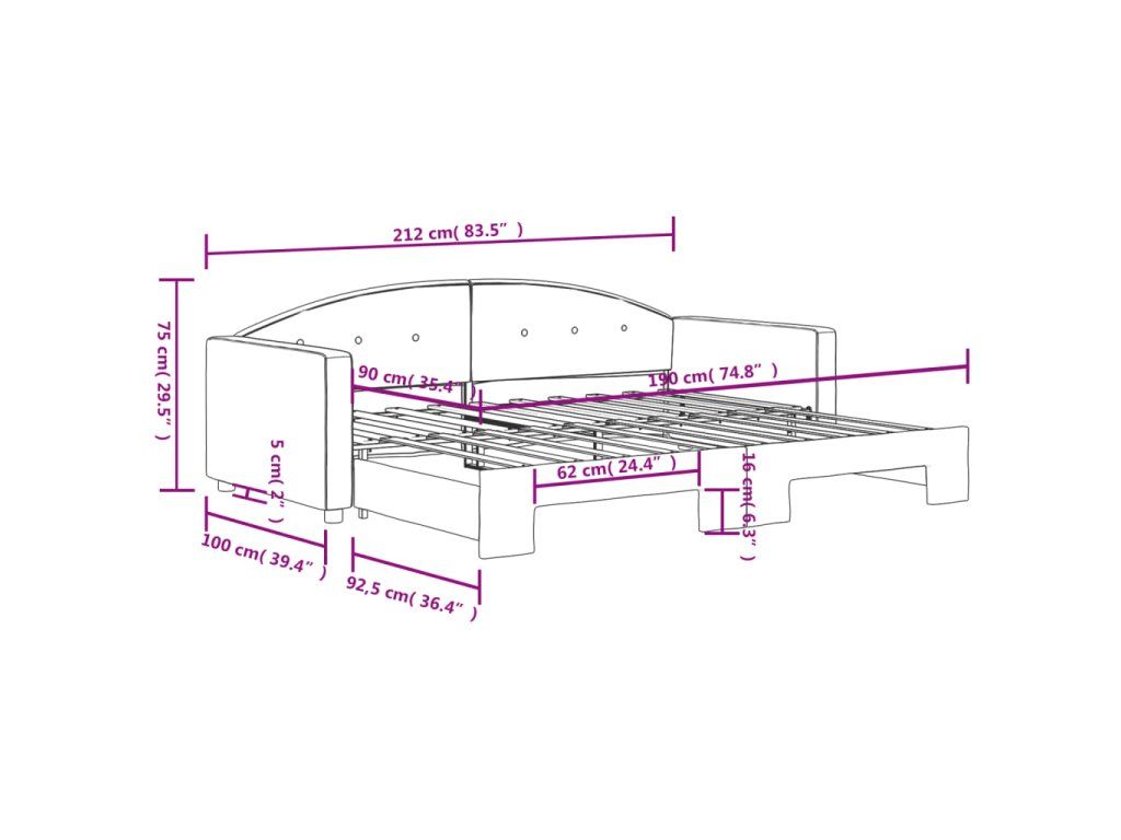 - Rozměry (nevysunuté): 212 x 100 x 75 cm (D x Š x V)