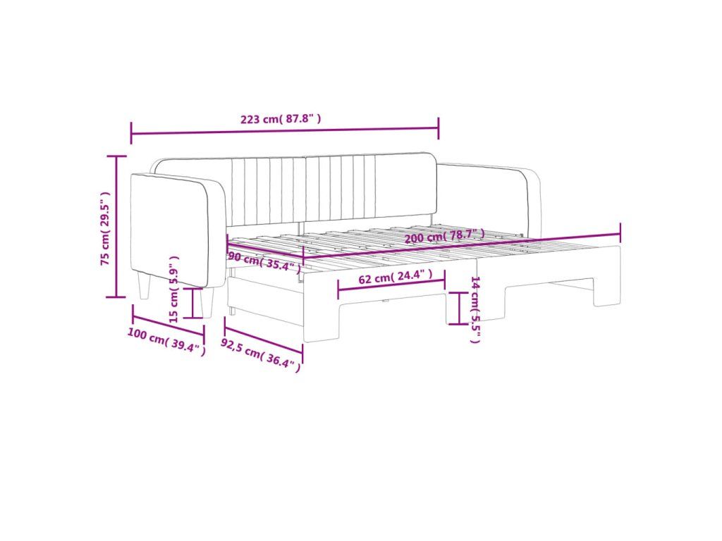 - Rozměry (nevysunuté): 223 x 100 x 75 cm (D x Š x V)