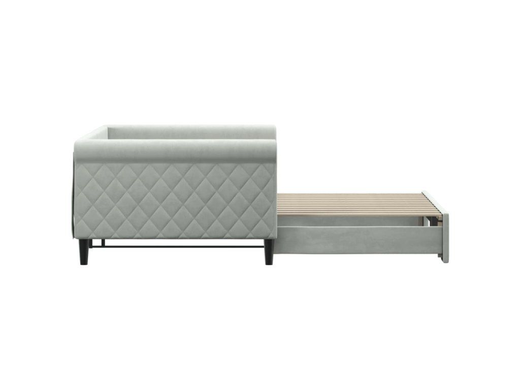 - Měkký samet a pevná konstrukce: Tato válenda má robustní rám zhotovený ze dřeva a kovu a je čalouněná měkkým a pohodlným sametem.