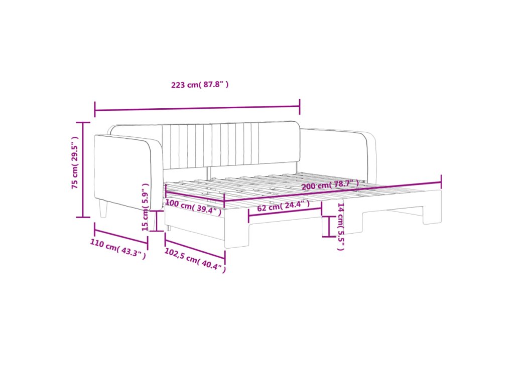 - Rozměry (nevysunuté): 223 x 110 x 75 cm (D x Š x V)