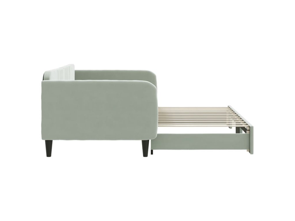 - Měkký samet a pevná konstrukce: Tato válenda má robustní rám zhotovený ze dřeva a kovu a je čalouněná měkkým a pohodlným sametem.