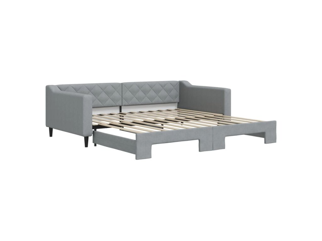 - Odolná tkanina a pevná konstrukce: Tato válenda má robustní rám ze dřeva a kovu a je čalouněná odolnou a pohodlnou látkou.