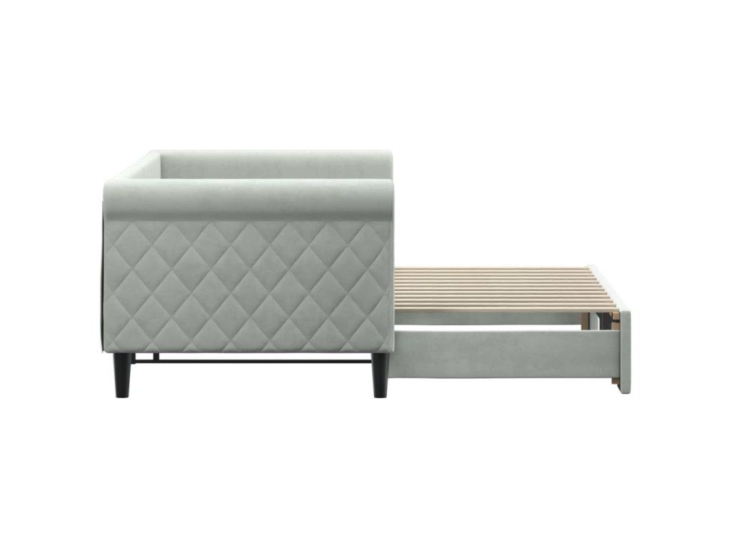 - Měkký samet a pevná konstrukce: Tato válenda má robustní rám zhotovený ze dřeva a kovu a je čalouněná měkkým a pohodlným sametem.