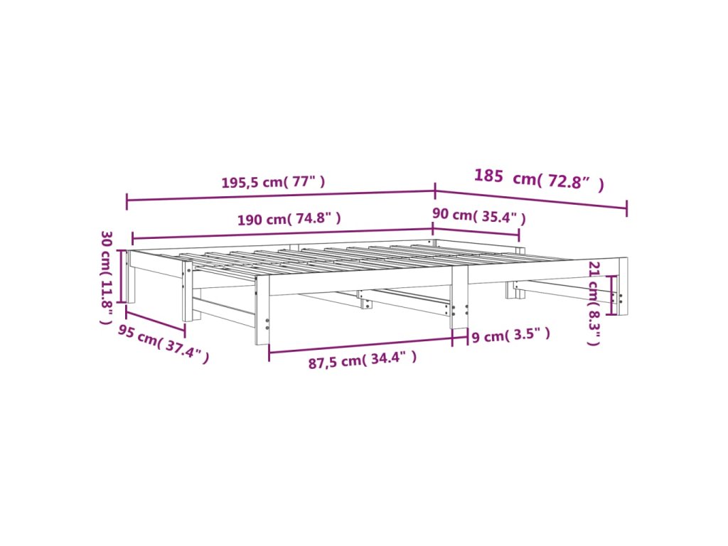 - Výsuvná rozkládací pohovka: Dřevěnou válendu lze během dne používat jako pohovku a přes noc jako postel, která vám nabídne rychle řešení k uložení vašich hostů a zároveň vám ušetří místo.
