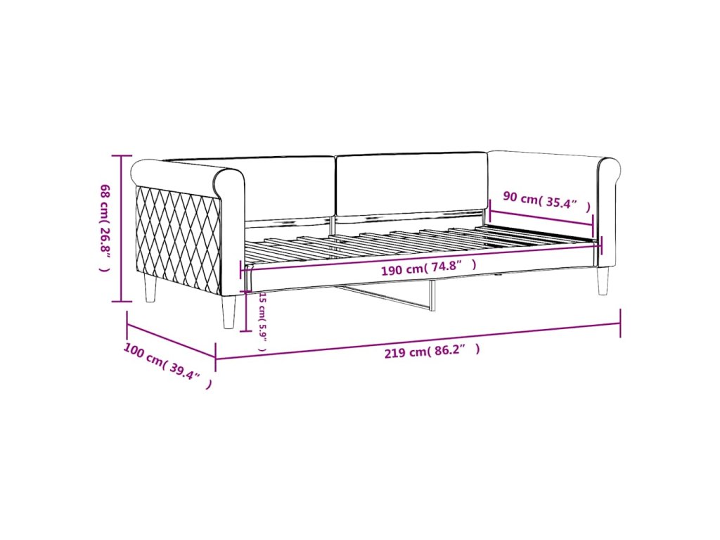- Pohodlný zážitek: Válenda je vyrobena ze sametu. Samet je měkká a komfortní tkanina, která je příjemná na kůži. Opěradlo a područky této postele pro hosty jsou navíc polstrované pěnovým molitanem, aby se vám na ní pohodlněji sedělo.