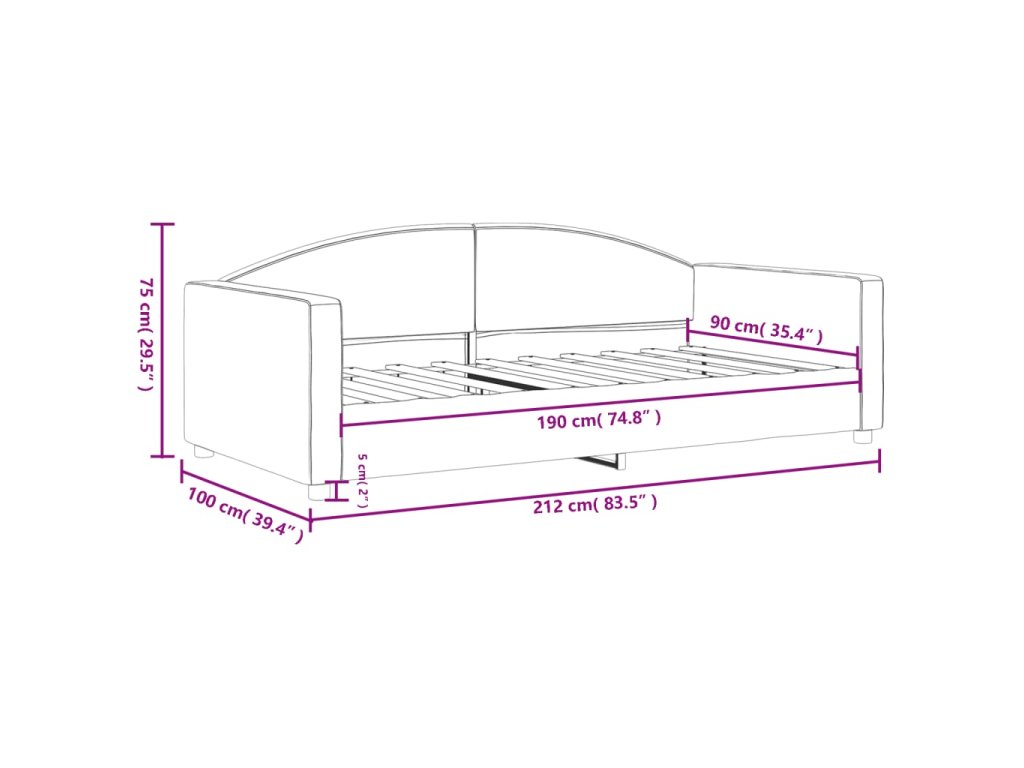 - Rozměry sedáku: 90 x 190 cm (Š x D)