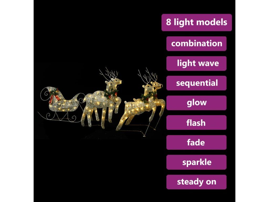 Ozdobte svou zahradu touto jedinečnou venkovní vánoční dekorací. Sobi se sáněmi ve spojení s osvětlením v teplém bílém odstínu podtrhnou skutečnou krásu svátečního období!