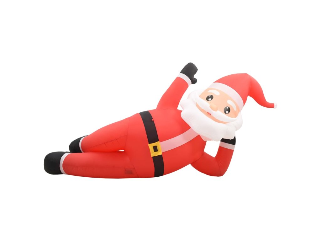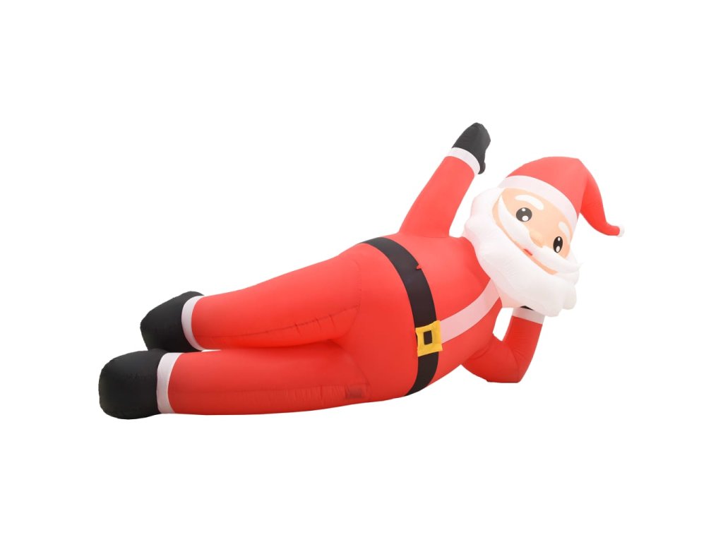 Obří ležící Santa Claus je rozhodně dekorací, která bude dominovat vaší vánoční výzdobě. Nafukovací Santa je vyrobený z kvalitní polyesterové tkaniny, takže je lehký, nepodléhá povětrnostním vlivům, skvěle vzdoruje vodě a celkově je velice odolný. Santa se sám nafoukne během několika sekund. Má v sobě zabudované 1 dmychadlo, které uvnitř výborně drží vzduch. Po svátcích tuto dekoraci snadno vyprázdníte a uskladníte až do dalších Vánoc. Vánoční nafukovadlo je vybavené 5 vysoce výkonnými LED diodami, jež vyzařují jasné světlo, a přesto jsou velmi energeticky efektivní. Santu Clause jednoduše upevníte k zemi dodanými zemními kolíky a lany, které jsou součástí balení.