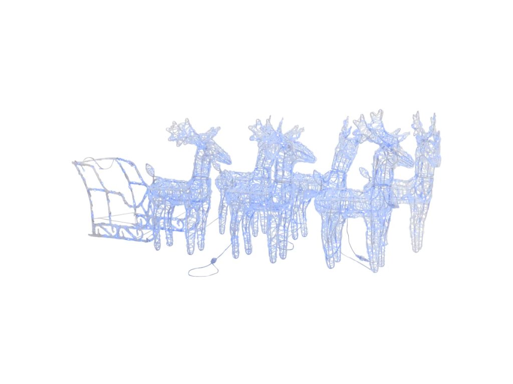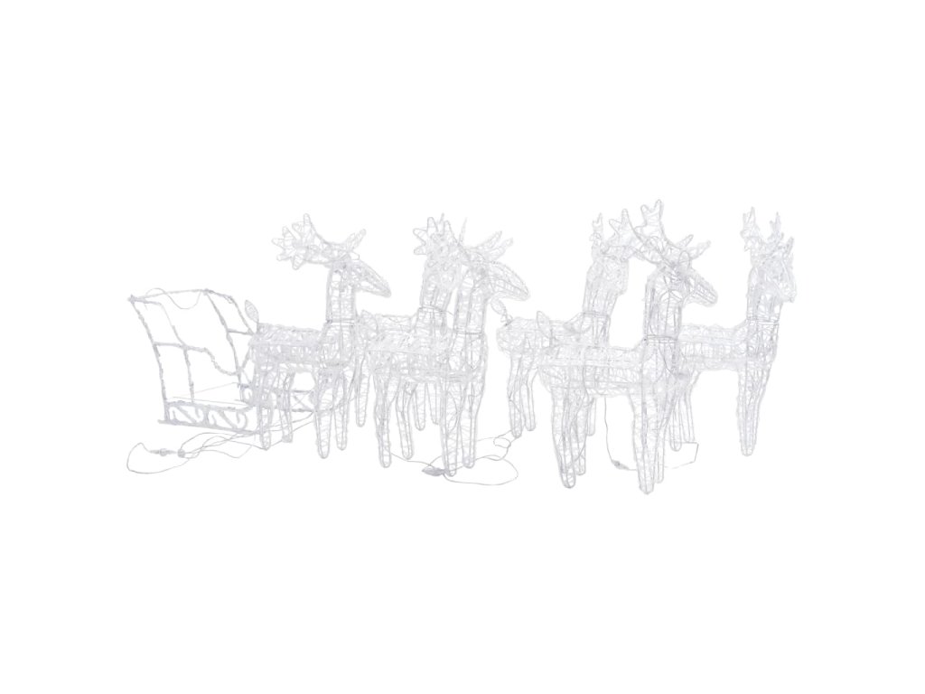 - Materiál odolný vůči povětrnostním vlivům: Tento svítící sob se sáněmi je vyrobený z akrylu a PVC vinutého kolem ocelového rámu a výborně odolá povětrnostním vlivům během vánočních svátků.