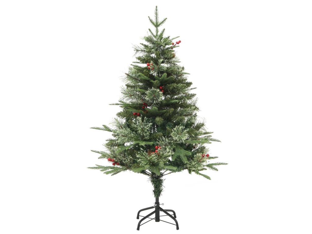Tento krásný vánoční stromek má větve vyrobené z PVC a PE. Přiložený ocelový stojan navíc poskytuje stromku optimální stabilitu. Je vybaven energeticky úspornými LED světly, krásně svítí a vytváří útulnou vánoční atmosféru. Tento vánoční strom se šiškami a červenými bobulemi posetými jehličím oživí každý domov. Větve stromku jsou připevněny ke středovému sloupku pomocí systému pantů. Tím se větve automaticky posunou do správné polohy.
