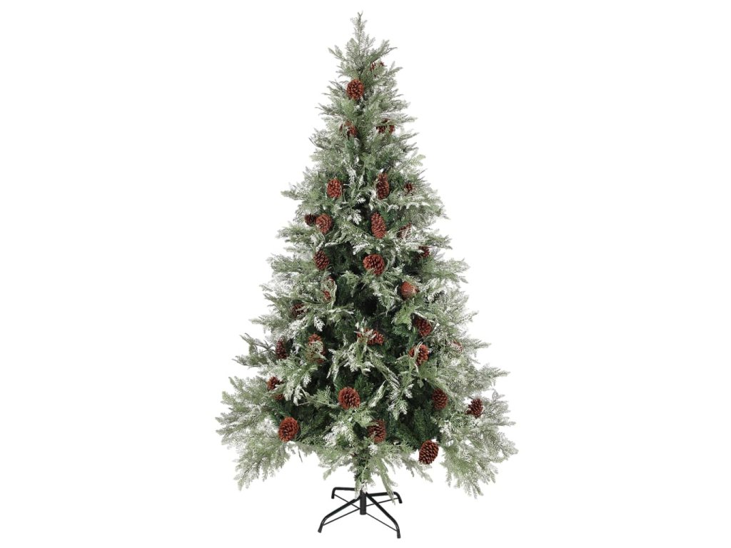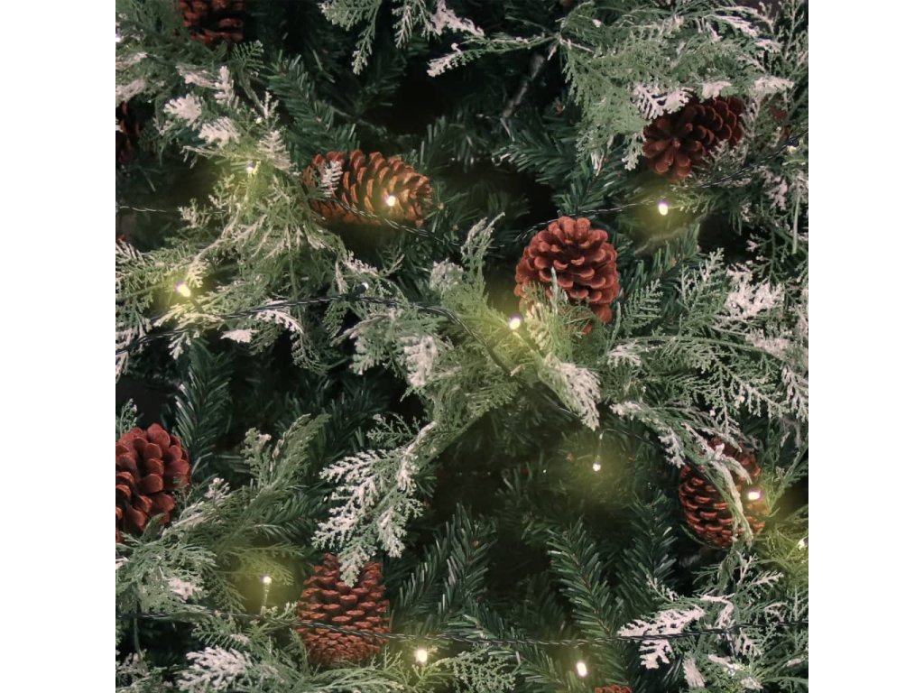 Tento krásný vánoční stromek má větve vyrobené z PVC a PE. Větve stromku jsou připevněny ke středovému sloupku pomocí systému pantů. Tím se větve automaticky posunou do správné polohy. Šišky a jehličí pokryté bílým sněhovým popraškem navíc dodává tomuto vánočnímu stromku na eleganci. Je vybaven energeticky úspornými LED světly, krásně svítí a vytváří útulnou vánoční atmosféru. Přiložený ocelový stojan poskytuje stromku optimální stabilitu.