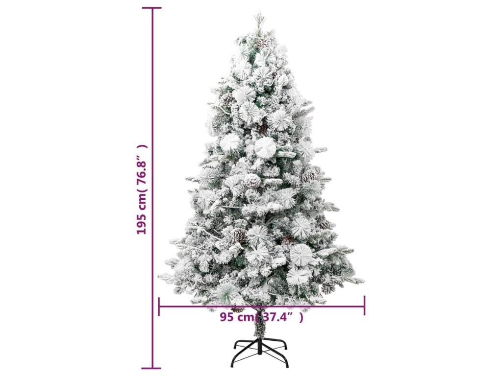 Tento krásný vánoční stromek má větve vyrobené z PVC a PE. Větve stromku jsou připevněny ke středovému sloupku pomocí systému pantů. Tím se větve automaticky posunou do správné polohy. Šišky a jehličí pokryté bílým sněhovým popraškem navíc dodává tomuto vánočnímu stromku na eleganci. Je vybaven energeticky úspornými LED světly, krásně svítí a vytváří útulnou vánoční atmosféru. Přiložený ocelový stojan poskytuje stromku optimální stabilitu.