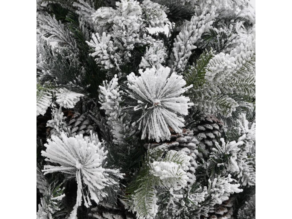 Tento krásný vánoční stromek má větve zhotovené z PVC a PE, které jsou ke středové tyči připevněné systémem pantů. Tento systém zajišťuje, že se větve automaticky nastaví do správné polohy. Šišky a bílý sníh na jehličí dodávají tomuto vánočnímu stromku elegantní vzhled. Ocelový stojan, který je součástí balení, poskytuje stromku optimální stabilitu.