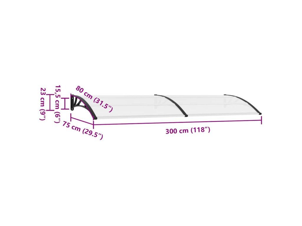 Duté polykarbonátové desky mají neuvěřitelnou životnost a jsou odolné vůči vlivům počasí i rzi. Pevná konstrukce se silnými ABS konzolami a hliníkovými tyčemi je mimořádně stabilní a poskytuje této vchodové stříšce dostatečně silnou oporu. Veškeré potřebné příslušenství pro rychlou a snadnou montáž je součástí balení.