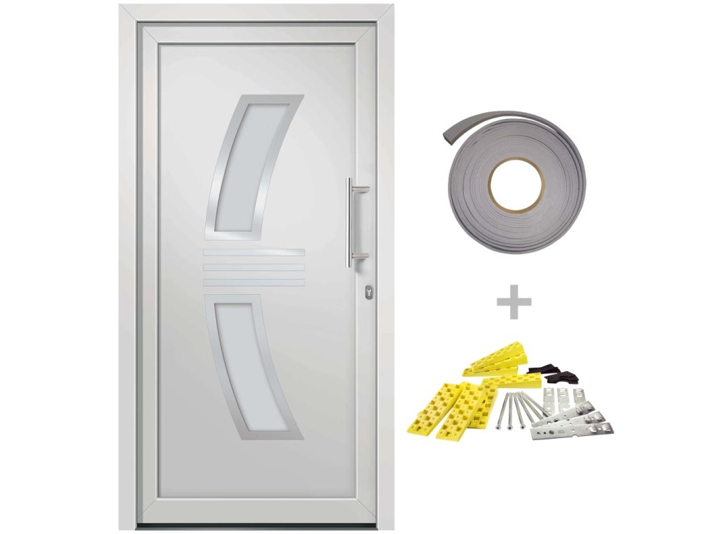 Vchodové dveře mají kvalitní rám i výplň, hliníkový práh, 3D nastavitelné panty (3 panty pro každé dveře), 5 spojovacích kování, izolační zasklení a 1,2mm ocelovou výztuhu. Vstupní dveře jsou velmi působivé s robustní kvalitou a vysoce praktickým bezpečným zamykáním. Obdržíte je spolu s kompletní sadou, která obsahuje sadu klik, klíče, cylindrickou vložku, těsnící pásku a montážní příslušenství.