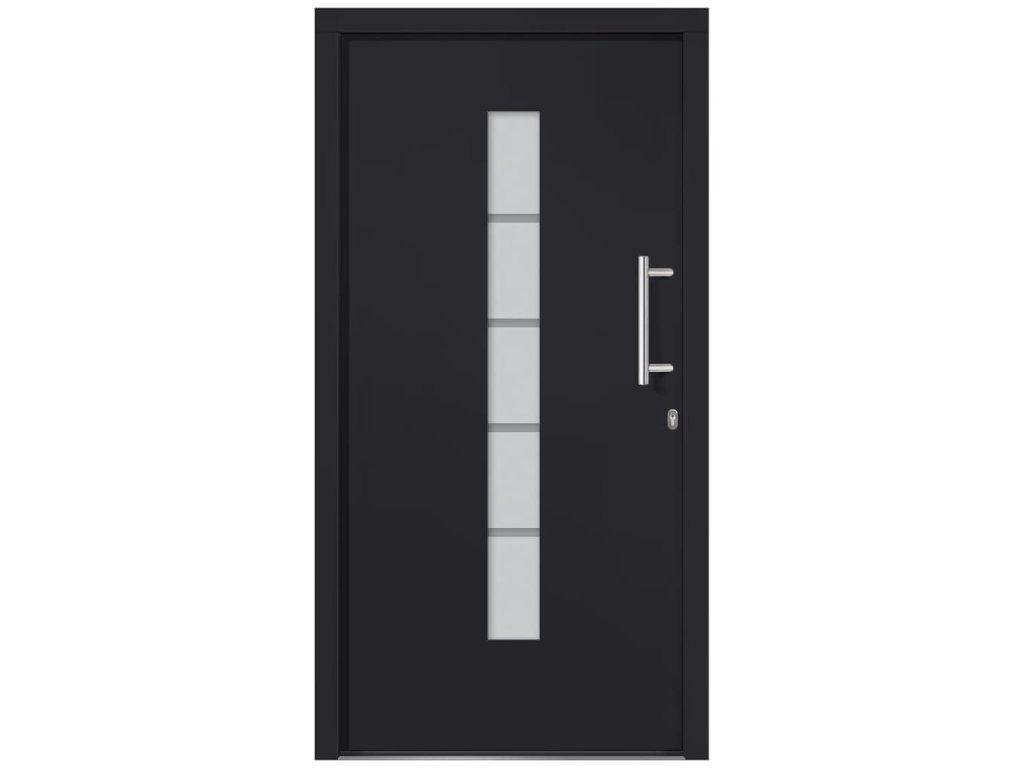 Vchodové dveře mají robustní rám i výplň, hliníkový práh, nastavitelné panty, bezpečnostní zámek s jazýčkem a háčkem a 5 stavítky, izolační zasklení a výztuhou z pozinkované oceli. Samotné dveře jsou vyrobené z hliníku a PVC a vyznačují se svou působivou bytelností a vysoce praktickým zamykáním. Obdržíte je spolu s kompletní sadou, která obsahuje nerezovou úchytku, vnitřní kliku, klíče, těsnící pásku a montážní příslušenství.