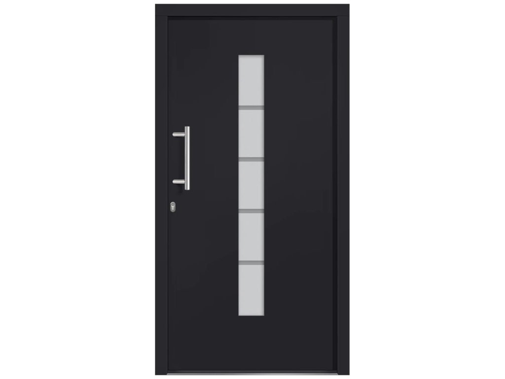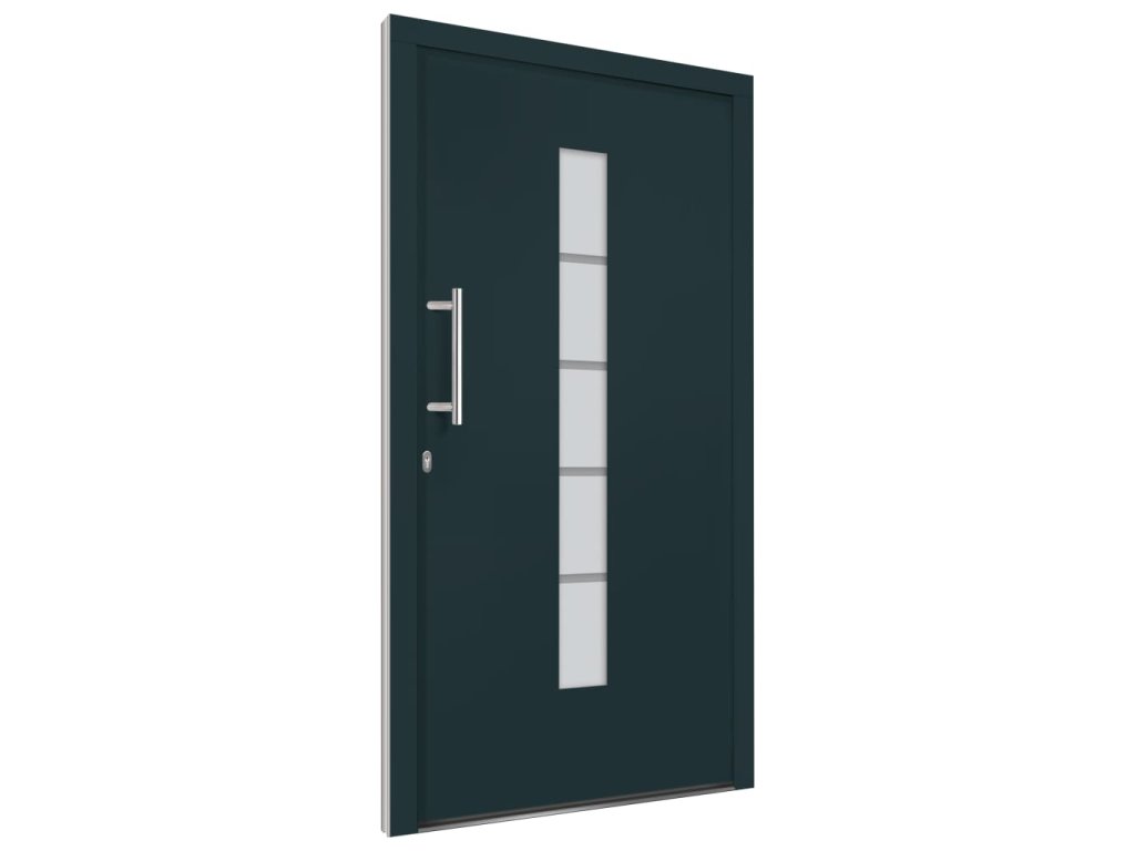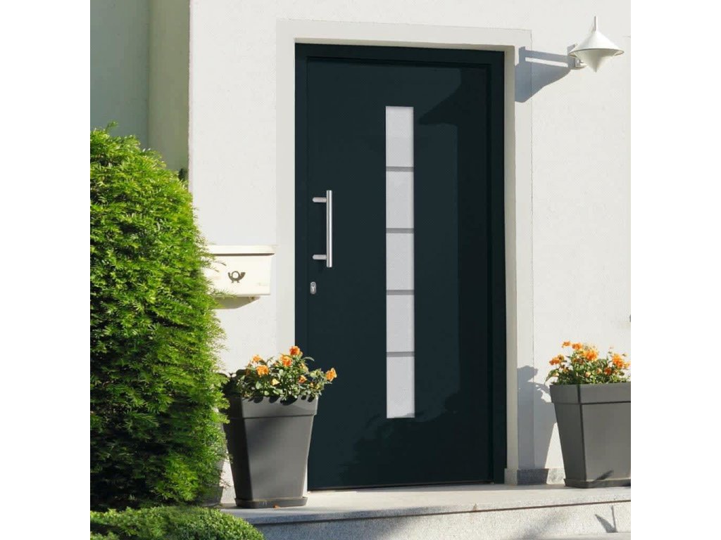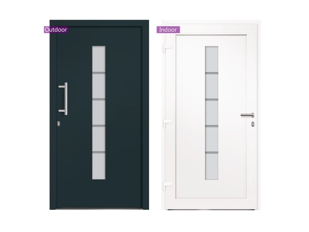 Vchodové dveře mají robustní rám i výplň, hliníkový práh, nastavitelné panty, bezpečnostní zámek s jazýčkem s háčkem a 5 stavítky, izolační zasklení a výztuhou z pozinkované oceli. Samotné dveře jsou vyrobené z hliníku a PVC a vyznačují se svou působivou bytelností a vysoce praktickým zamykáním. Obdržíte je spolu s kompletní sadou, která obsahuje nerezovou úchytku, vnitřní kliku, klíče, těsnící pásku a montážní příslušenství.