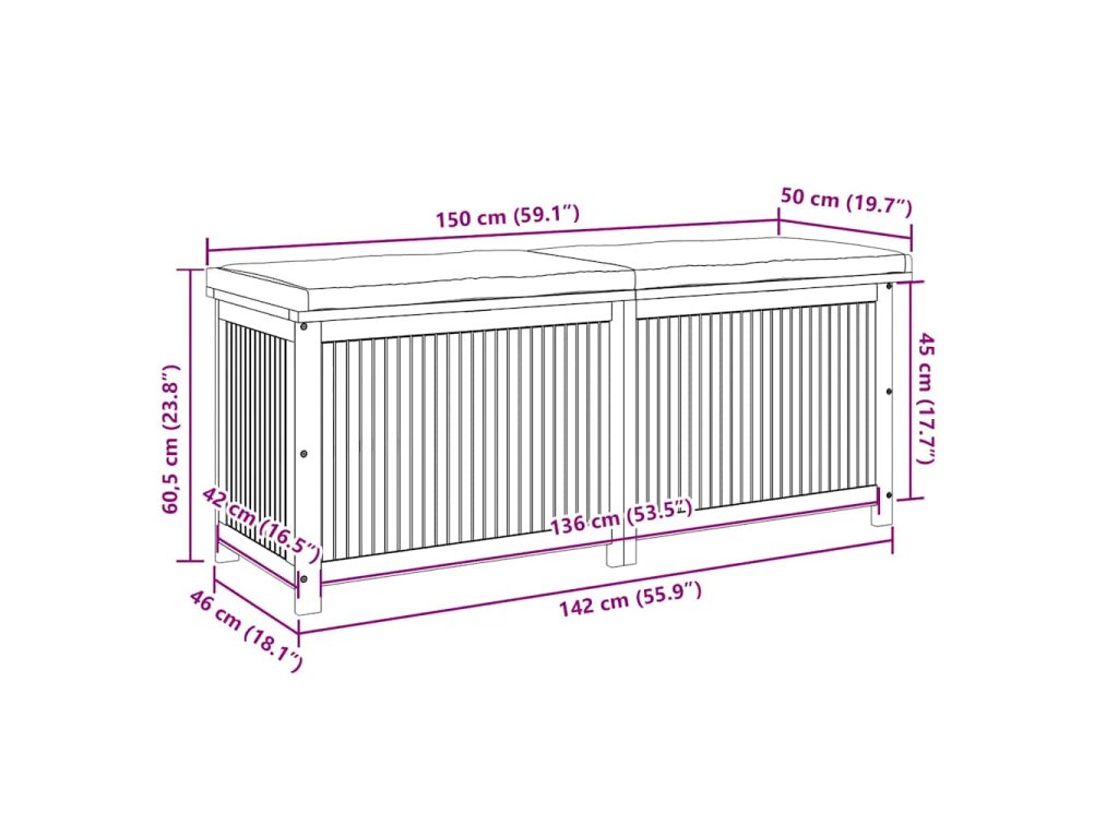 - Vnitřní rozměry krabice: 136 x 42 x 45 cm (š x h x v)