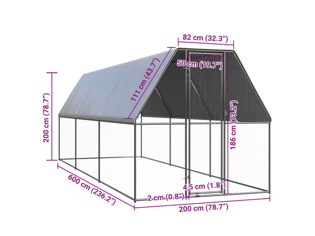 - Stabilní rám: Tento výběh pro kuřata je vyroben z pozinkované oceli. Kovové rámy zajišťují robustnost a stabilitu.