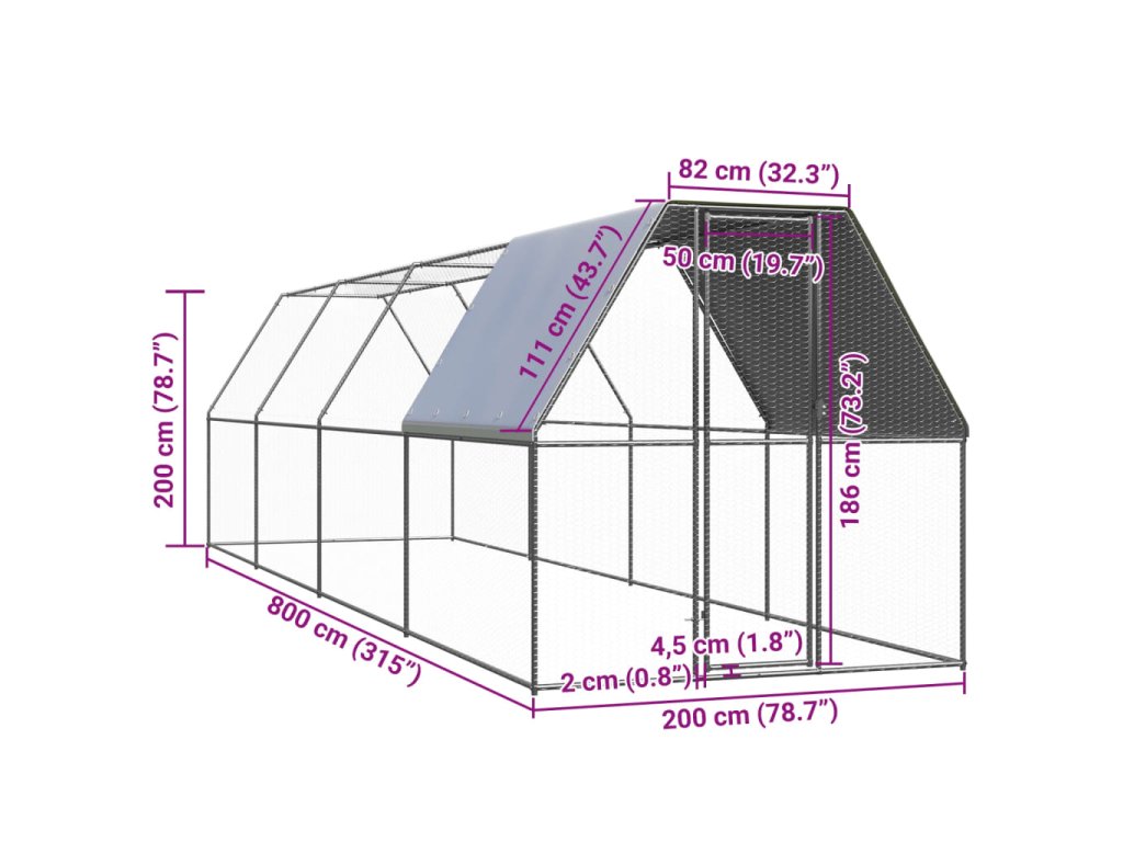 Výběh pro kuřata je vyrobený z pozinkované oceli. Zakrývá ho střecha z polyethylenu, která skvěle odolává vodě i UV záření. Dvířka jsou opatřená zámkem, což vašim drobným zvířatům zajišťuje větší bezpečnost a ochranu.