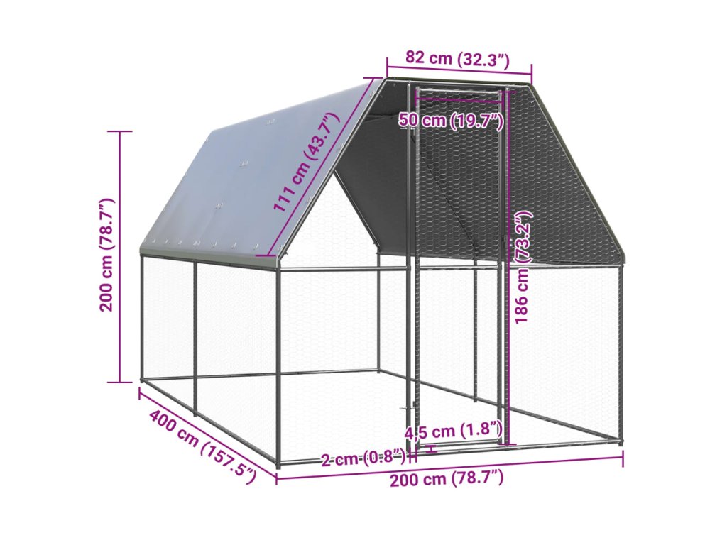 - Stabilní rám: Tento výběh pro kuřata je vyroben z pozinkované oceli. Kovové rámy zajišťují robustnost a stabilitu.