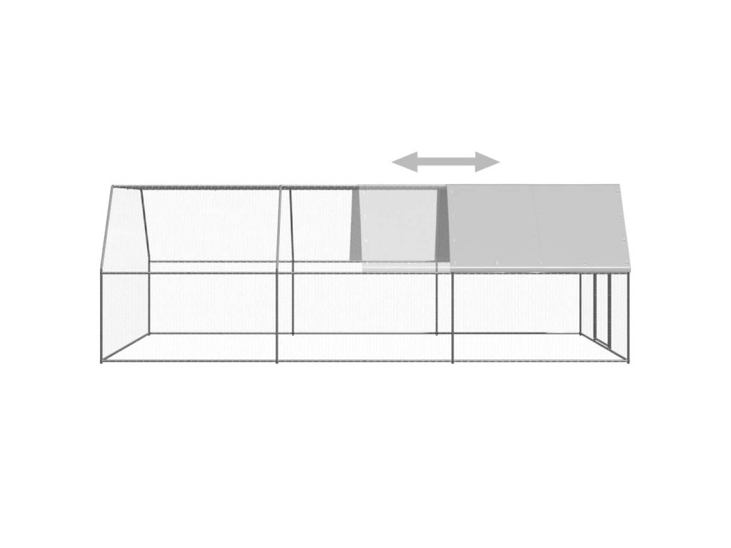 Výběh pro kuřata je vyrobený z pozinkované oceli. Zakrývá ho střecha z polyethylenu, která skvěle odolává vodě i UV záření. Dvířka jsou opatřená zámkem, což vašim drobným zvířatům zajišťuje větší bezpečnost a ochranu.