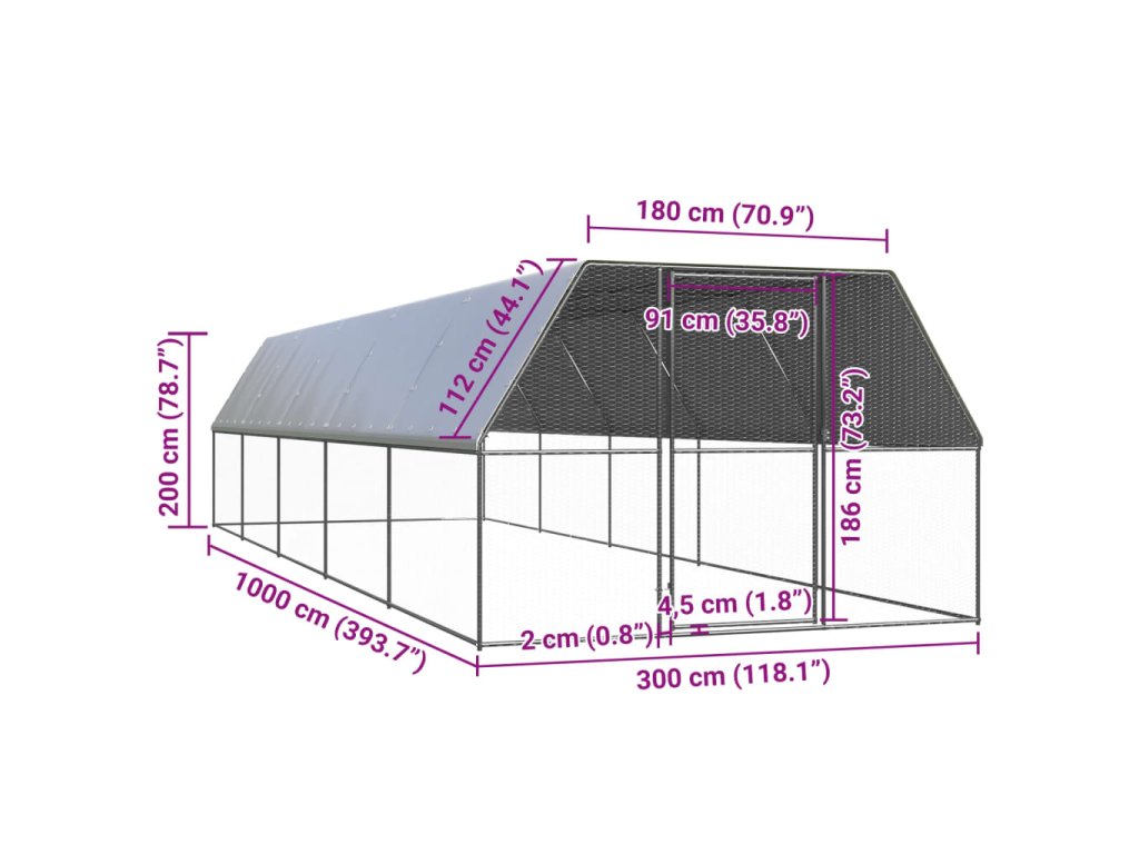 - Stabilní rám: Tento výběh pro kuřata je vyroben z pozinkované oceli. Kovové rámy přispívají k výtečné odolnosti a stabilitě.