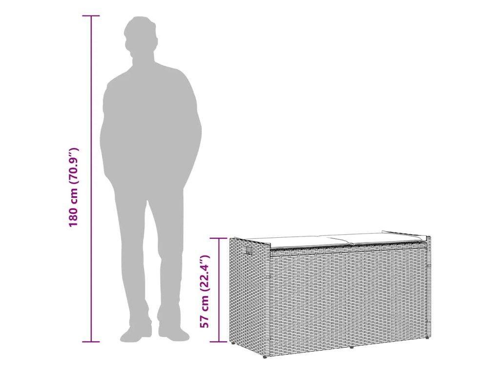 - Funkce ukládání: Zahradní nábytek je vybaven úložným prostorem, pod kterým se nachází voděodolná taška pro uložení polštářů, hraček a dalších předmětů. Vnitřní vak lze bezpečně připevnit k sedadlu pomocí háčků a smyček, což zajišťuje stabilitu a zabraňuje pohybu.