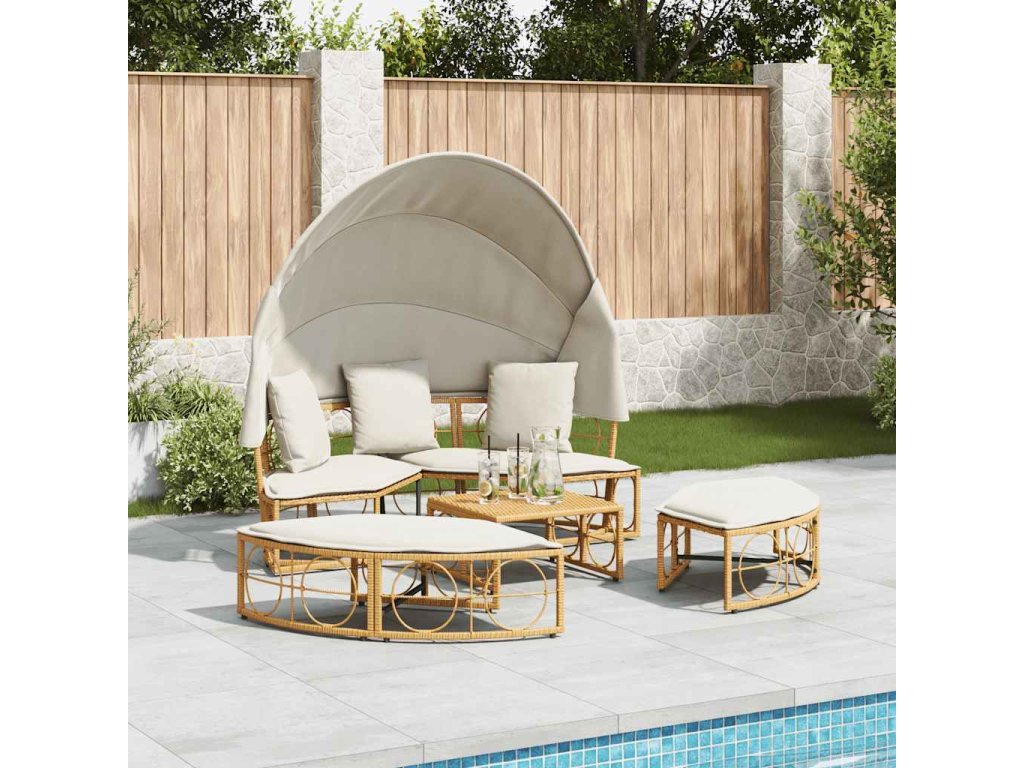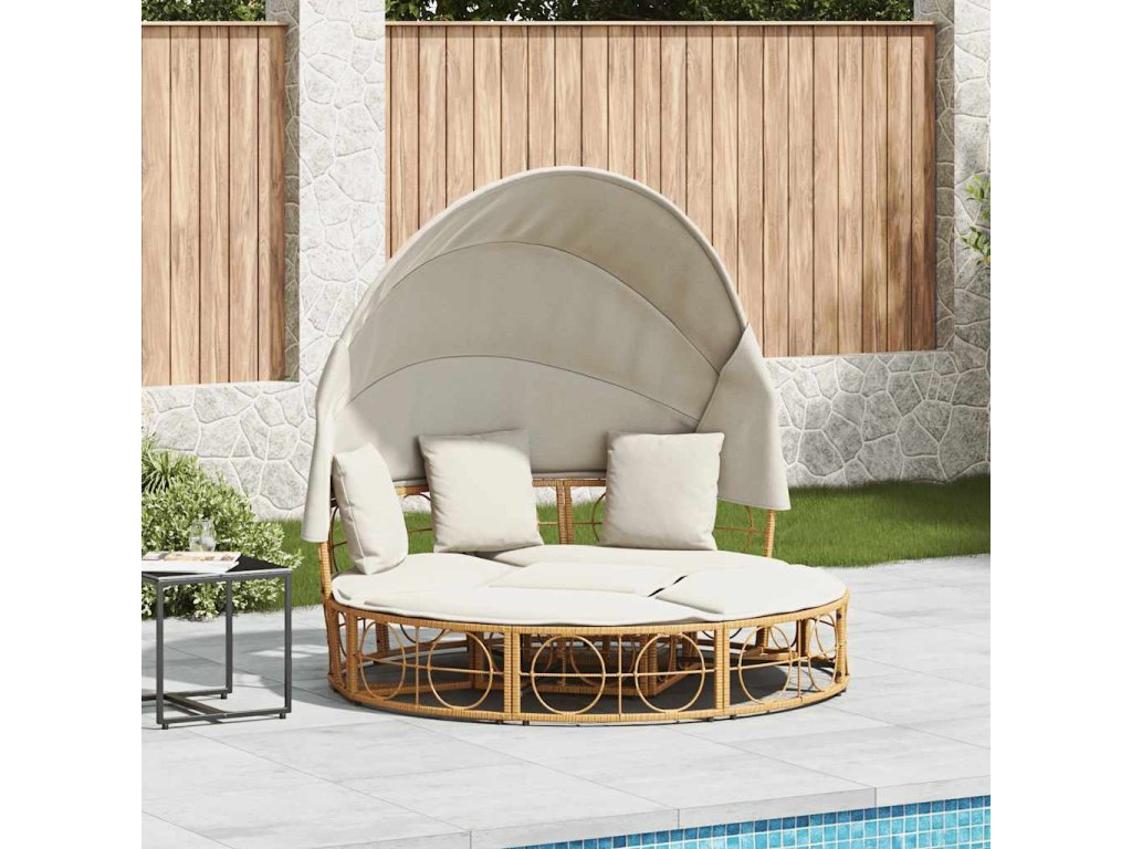 Tato pohodlná zahradní pohovka se střechou a poduškami je dokonalou kombinací stylu a funkčnosti.