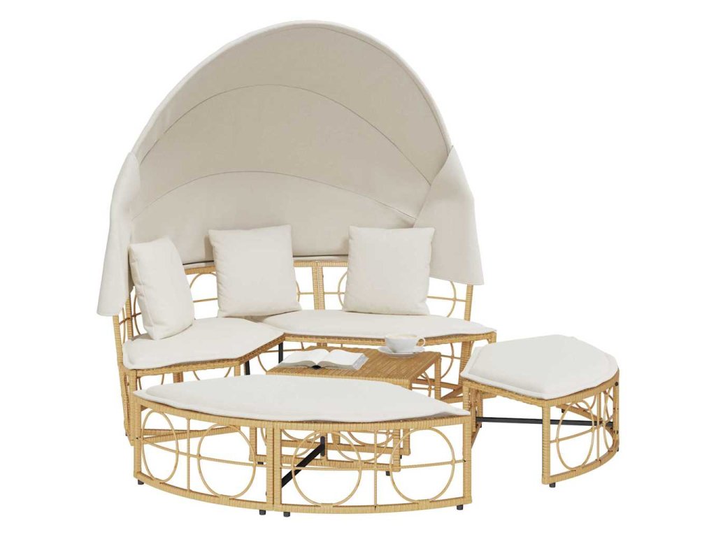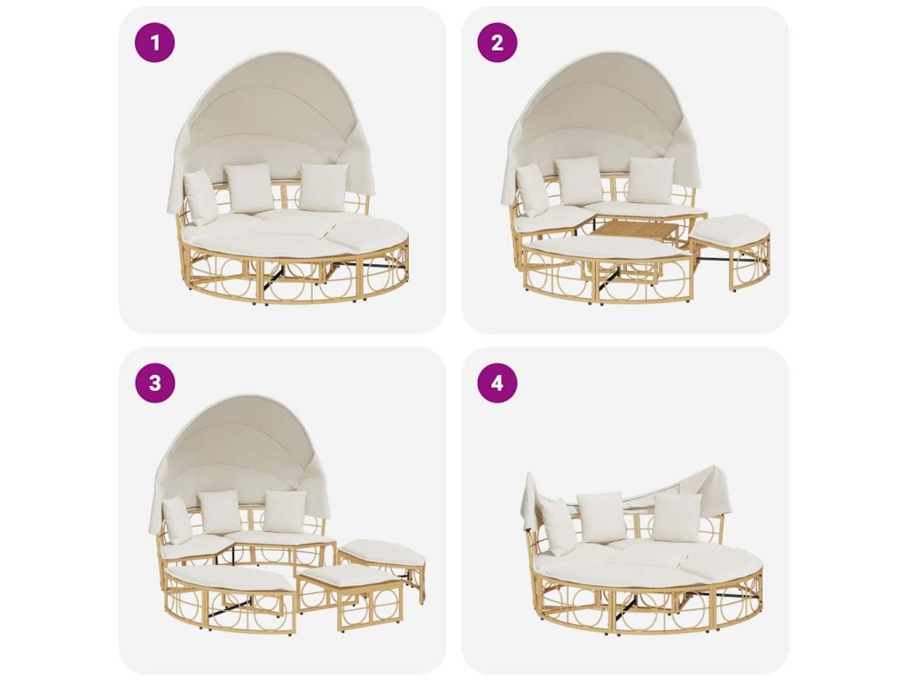 - Modulární konstrukce: Toto modulární zahradní lehátko lze uspořádat jako kulatý sluneční ostrov nebo rozdělit na konverzační soupravu se stolem a několika sedadly, která vám a vašim přátelům poskytne flexibilní místo k odpočinku.