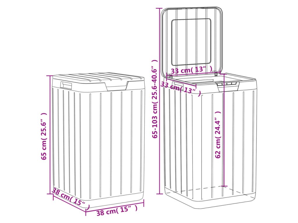 - Vnější rozměry: 38 x 38 x 65 cm (D x Š x V)