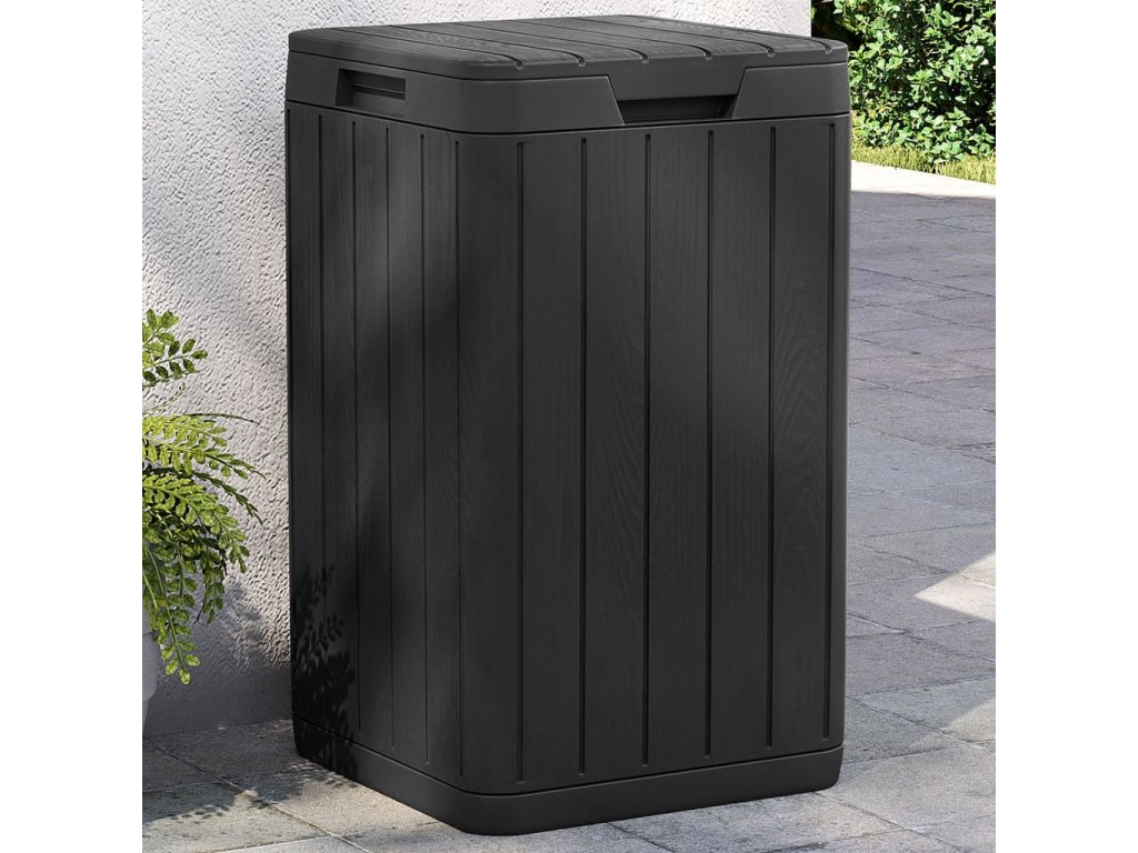- Design s texturou imitující dřevo: Tento zahradní koš imituje dřevěnou texturu, která dodá vašemu venkovnímu obytnému prostoru přírodní kouzlo.