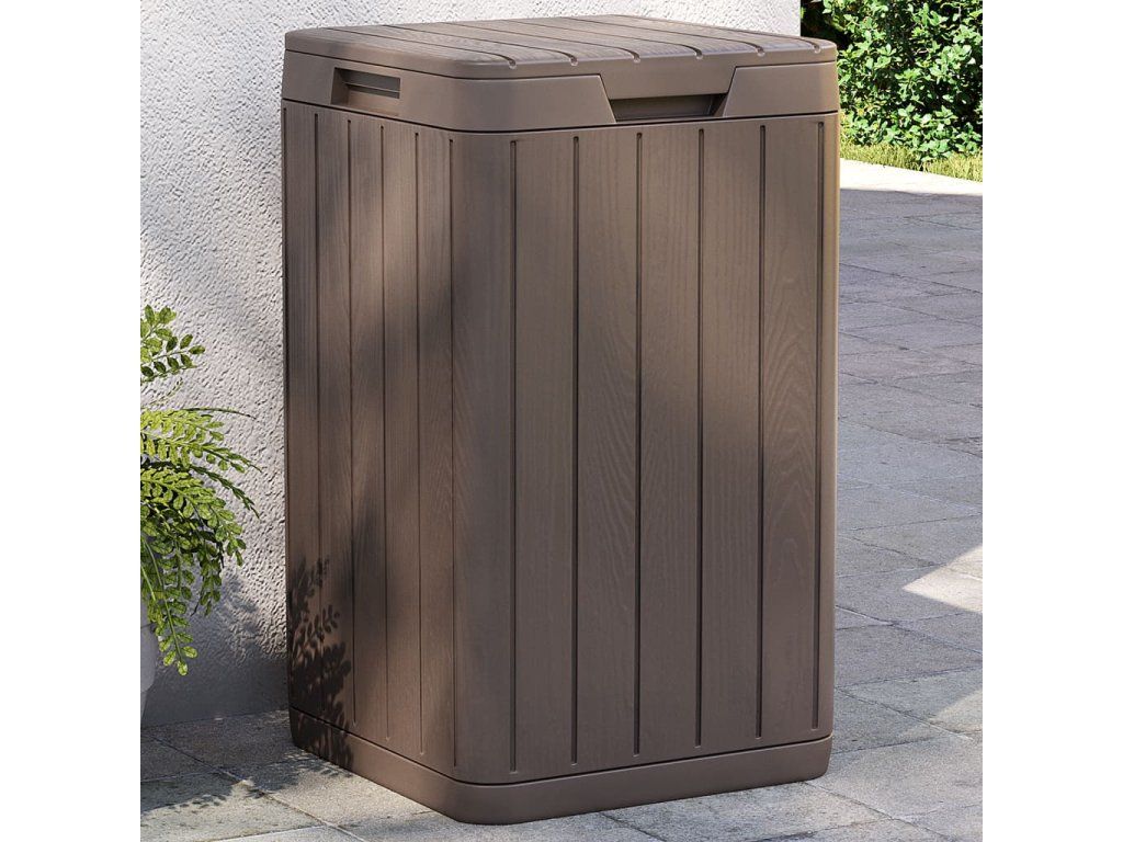 - Design s texturou imitující dřevo: Tento zahradní koš imituje dřevěnou texturu, která dodá vašemu venkovnímu obytnému prostoru přírodní kouzlo.
