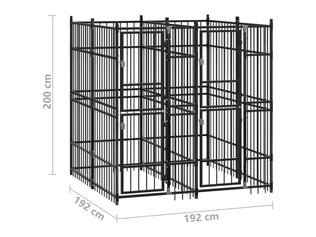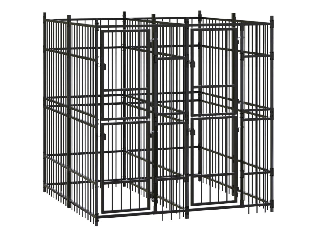 Psí kotec poskytne vašim psům spoustu prostoru k pohybu. Stěny z ocelových mříží předchází neplechám a neočekávaným nehodám a pouští dovnitř čerstvý vzduch. Vzhledem k jeho robustní a pevné konstrukci z práškově lakované oceli je kotec velmi odolný a vydrží vám sloužit po dlouhá léta. Dvířka s panty jsou opatřená uzamykatelnou západkou, aby vašim pejskům zaručila mimořádné bezpečí.