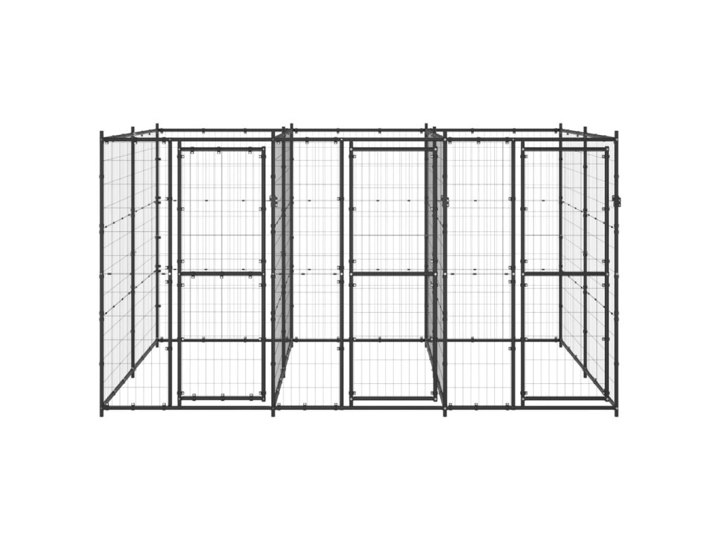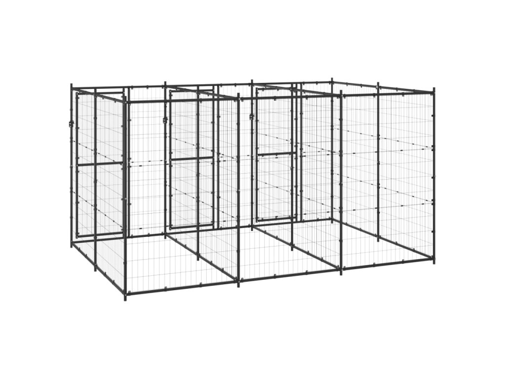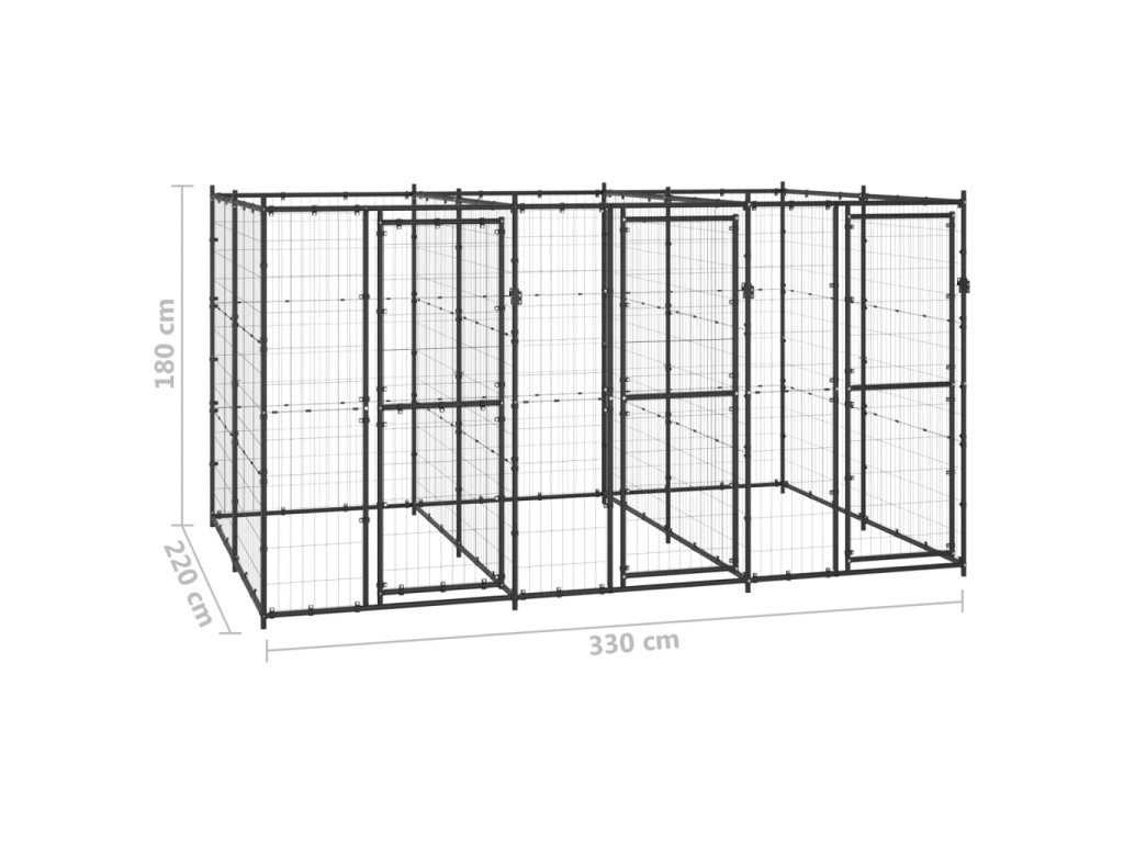 Psí kotec poskytne vašim psům spoustu prostoru k pohybu. Ocelové pletivo předchází neplechám a neočekávaným nehodám a pouští dovnitř čerstvý vzduch. Vzhledem k jeho robustní a pevné konstrukci z práškově lakované oceli má kotec velmi dobrou životnost a vydrží vám sloužit po dlouhá léta. Dvířka s panty jsou opatřená uzamykatelnou západkou, aby vašim pejskům zaručila mimořádné bezpečí.