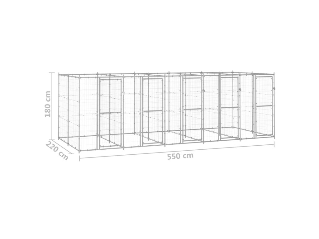 Psí kotec poskytne vašim psům spoustu prostoru k pohybu. Ocelové pletivo předchází neplechám a neočekávaným nehodám a pouští dovnitř čerstvý vzduch. Vzhledem k jeho robustní a pevné konstrukci z pozinkované oceli má kotec velmi dobrou životnost a vydrží vám sloužit po dlouhá léta. Dvířka s panty jsou opatřená uzamykatelnou západkou, aby vašim pejskům zaručila mimořádné bezpečí.