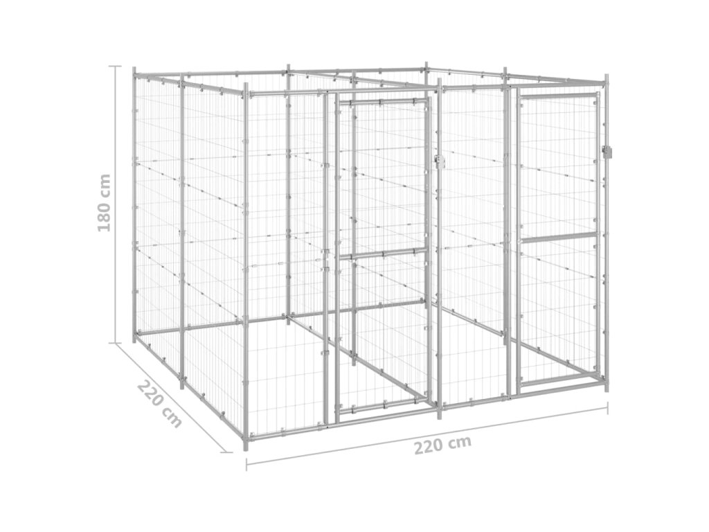 Psí kotec poskytne vašim psům spoustu prostoru k pohybu. Ocelové pletivo předchází neplechám a neočekávaným nehodám a pouští dovnitř čerstvý vzduch. Vzhledem k jeho robustní a pevné konstrukci z pozinkované oceli má kotec velmi dobrou životnost a vydrží vám sloužit po dlouhá léta. Dvířka s panty jsou opatřená uzamykatelnou západkou, aby vašim pejskům zaručila mimořádné bezpečí.