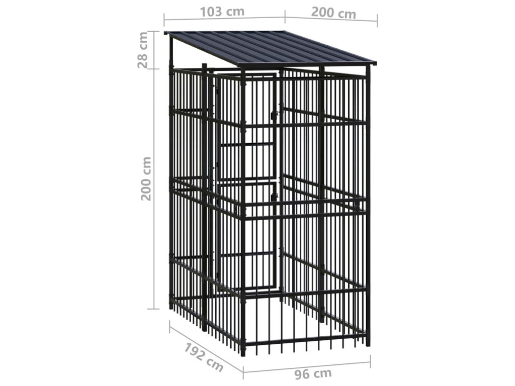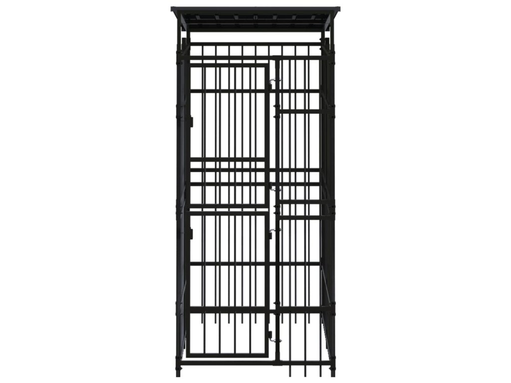 Psí kotec poskytne vašim psům spoustu prostoru k pohybu. Stěny z ocelových mříží předchází neplechám a neočekávaným nehodám a pouští dovnitř čerstvý vzduch. Vzhledem k jeho robustní a pevné konstrukci z práškově lakované oceli je kotec velmi odolný a vydrží vám sloužit po dlouhá léta. Střecha zajišťuje ochranu před sluncem, deštěm, sněhem a dalšími klimatickými podmínkami. Dvířka s panty jsou opatřená uzamykatelnou západkou, aby vašim pejskům zaručila mimořádné bezpečí.