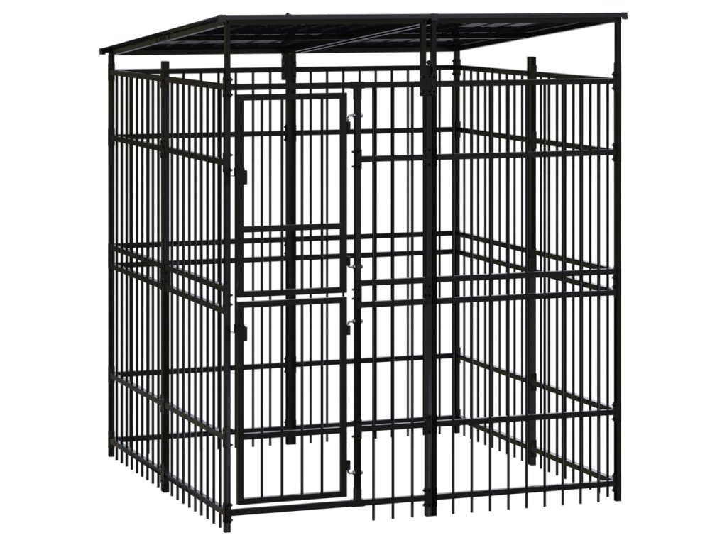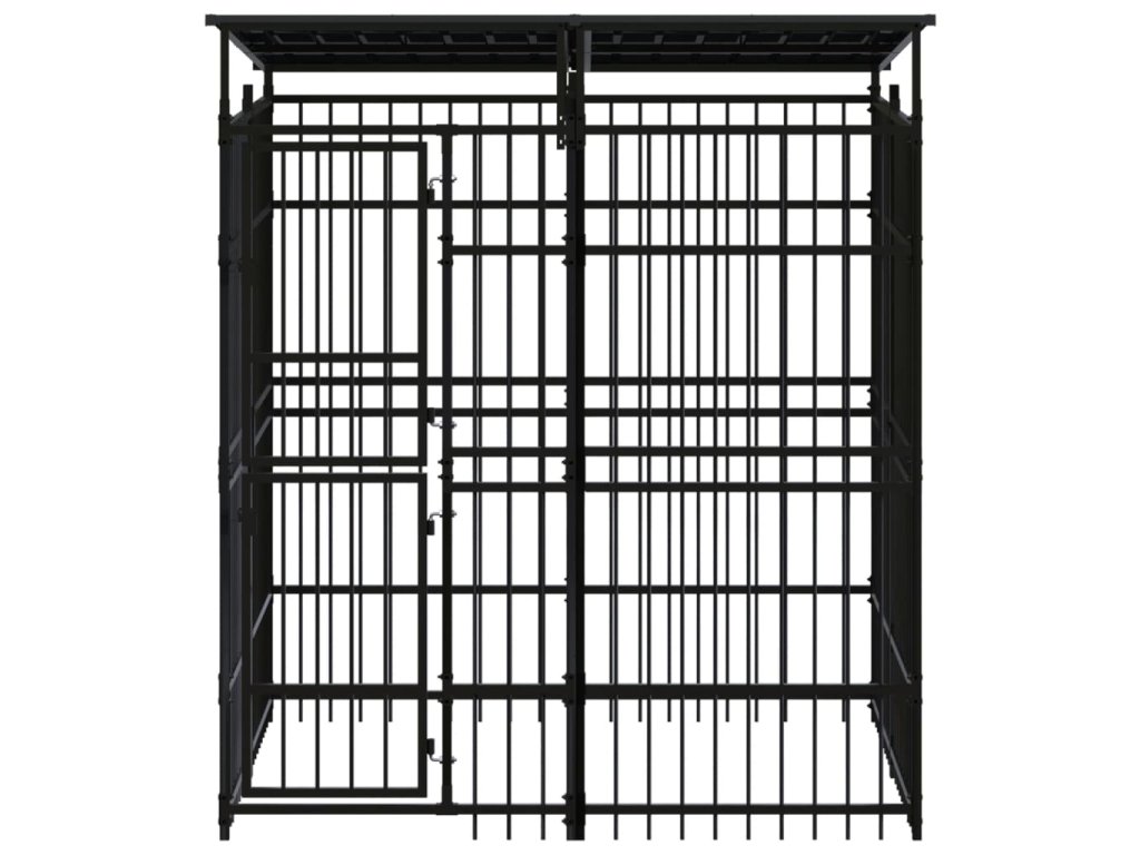 Tento psí kotec poskytuje dostatek prostoru pro cvičení. Stěny z ocelových tyčí pomáhají předcházet neplechám a neočekávaným nehodám a zároveň umožňují větrání. Díky robustní ocelové konstrukci s práškovým nástřikem je tento psí kotec odolný a vyrobený pro dlouhou životnost. Střecha chrání před sluncem, deštěm, sněhem a dalšími povětrnostními vlivy. Dveře s výklopnými dveřmi a uzamykatelným západkovým systémem zajišťují vašim psům větší bezpečnost a ochranu.