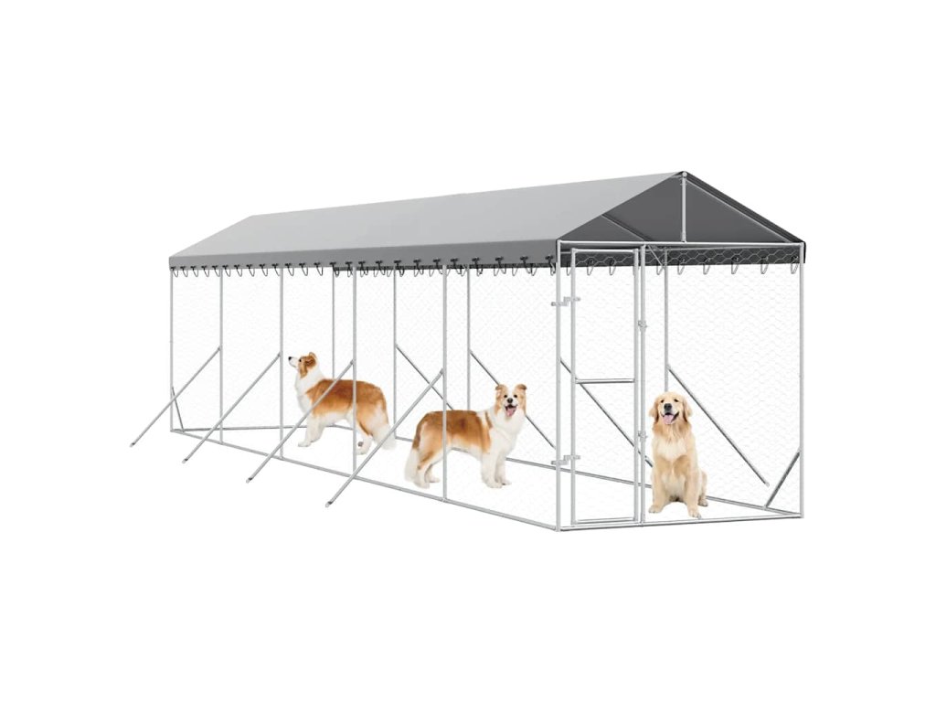 Tento praktický a prostorný venkovní kotec pro psy se střechou je ideální volbou jako venkovní výběh pro zajištění bezpečí a pohodlí vašich zvířat.
