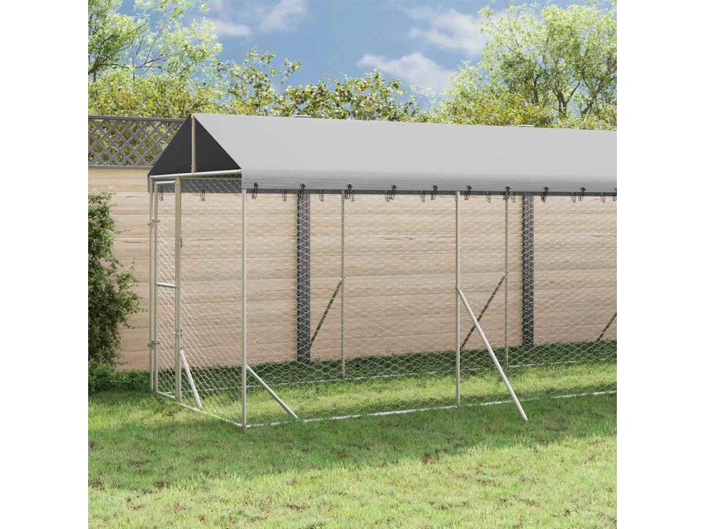 Tento praktický a prostorný venkovní kotec pro psy se střechou je ideální volbou jako venkovní výběh pro zajištění bezpečí a pohodlí vašich zvířat.
