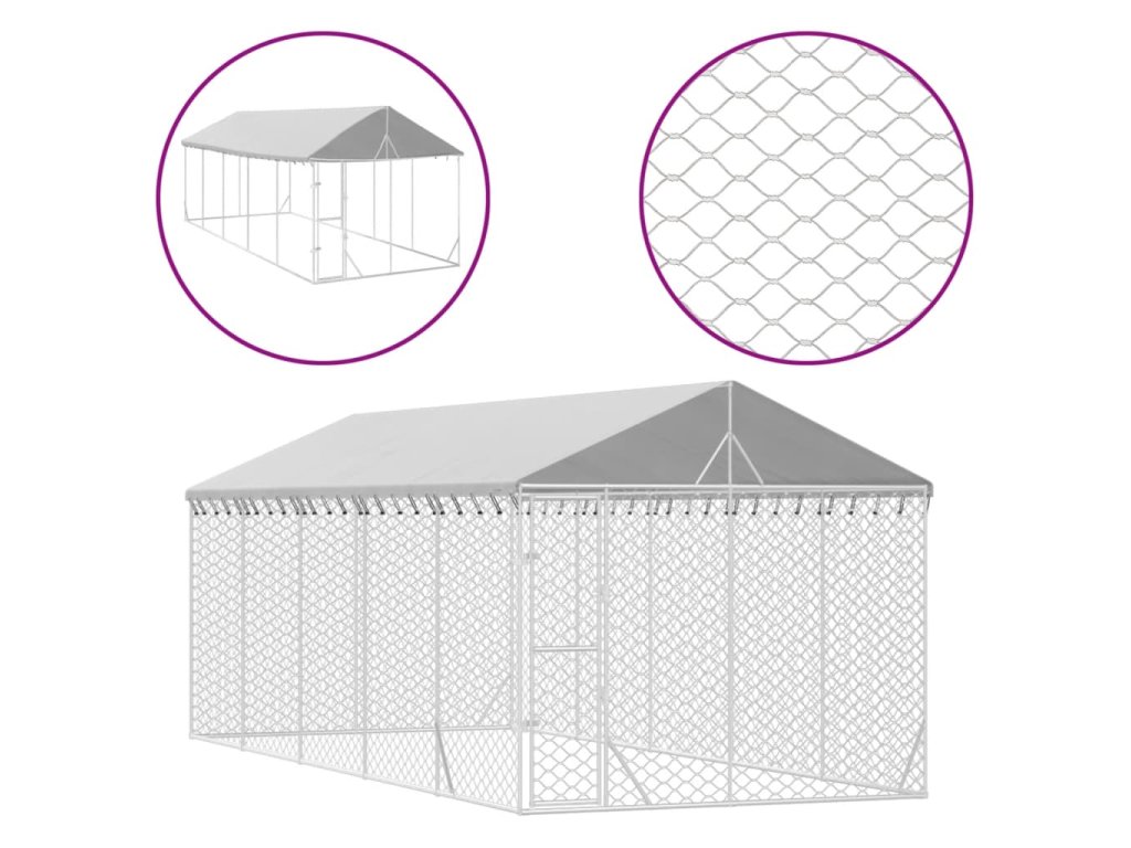 Tento praktický a prostorný venkovní kotec pro psy se střechou je ideální volbou jako venkovní výběh pro zajištění bezpečí a pohodlí vašich zvířat.