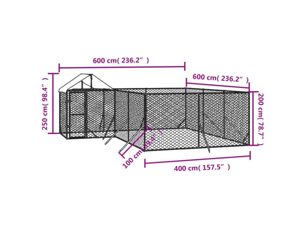 Tento praktický a prostorný venkovní kotec pro psy se střechou je ideální volbou jako venkovní výběh pro zajištění bezpečí a pohodlí vašich zvířat.