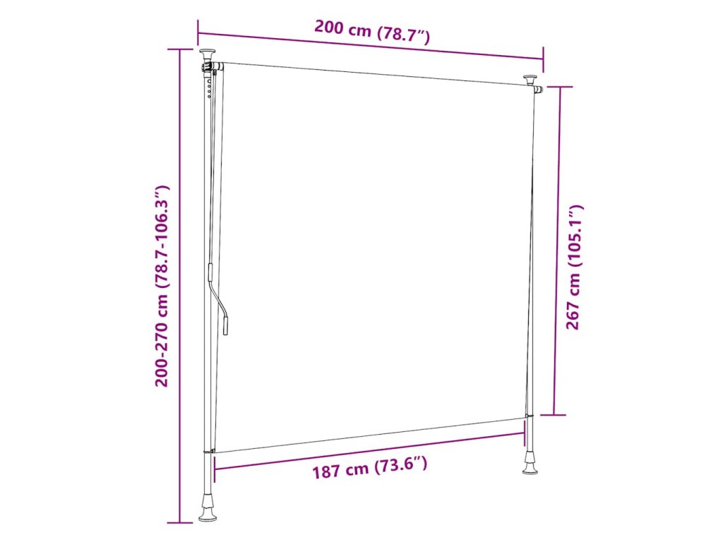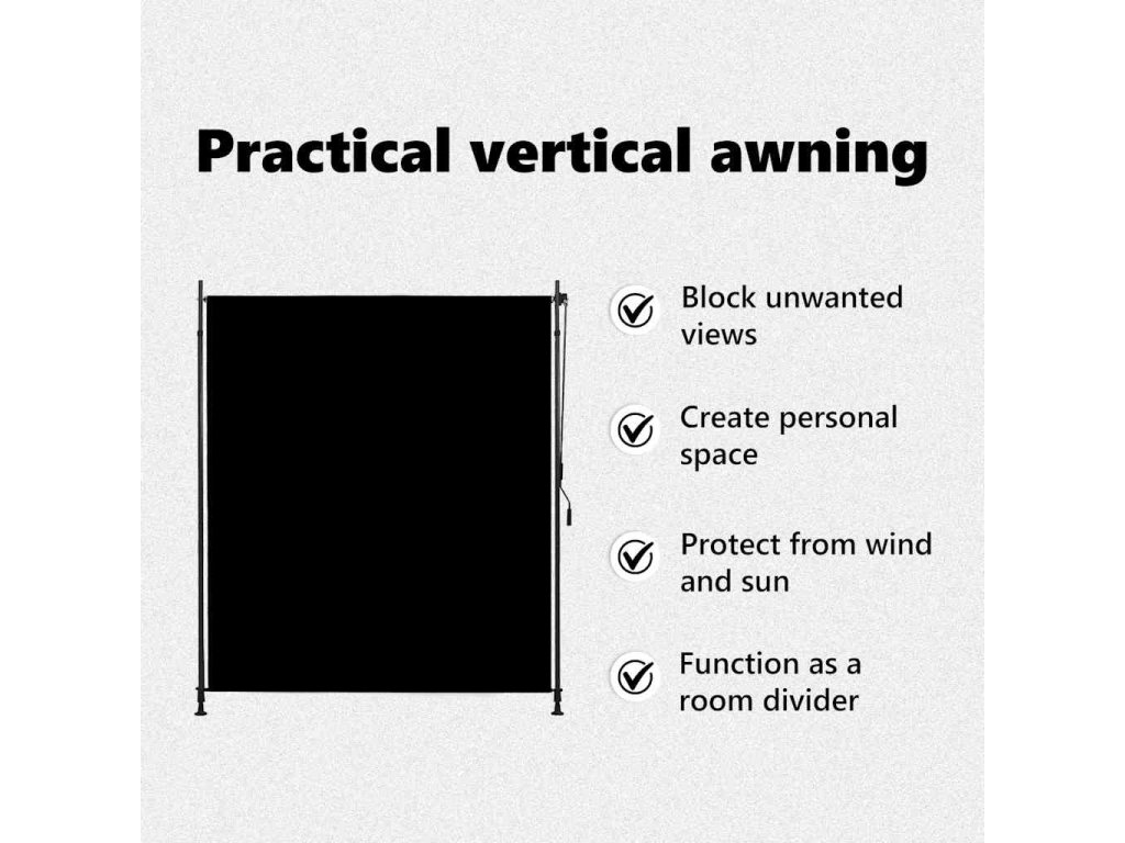 Je vyrobená z kvalitní látky s vrstvou PA, takže nebledne a skvěle blokuje sluneční záření, aniž by zamezovala proudění vzduchu. Ke snadnému stahování a vytahování slouží ruční klika. Tuto vertikální markýzu obdržíte se dvěma stojacími sloupky, jejichž výšku si můžete sami nastavit v rozmezí od 2 do 3 m. Vejde se tedy pod většinu zastropení a velice jednoduše se instaluje.