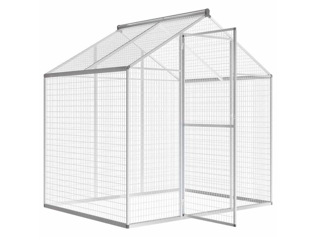 Díky robustní a bezúdržbové hliníkové konstrukci je tato volně stojící voliéra s dveřmi, opatřenými vysoce odolnými panty, určena k tomu, aby toho hodně vydržela. Je tak pevná, že může dokonce udržet osobu visící ze střechy.
