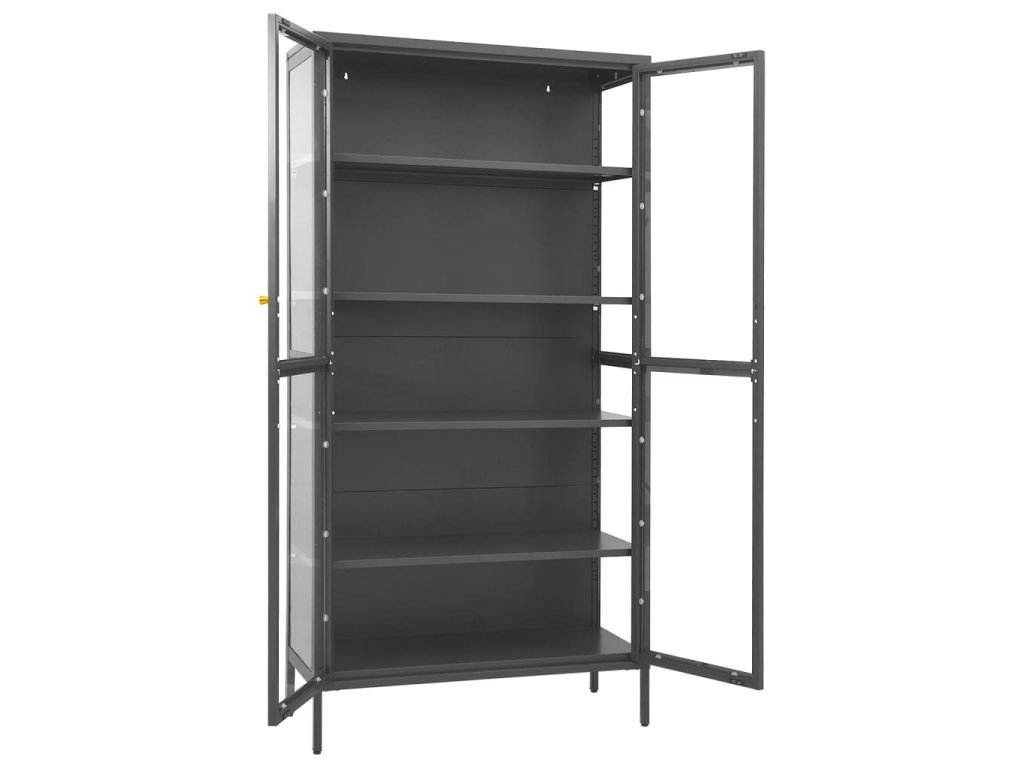 Úložná skříň je vyrobena z oceli a tvrzeného skla, takže je robustní a odolná a zajišťuje roky používání. K dispozici máte 4 nastavitelné police, které poskytují dostatek prostoru pro uložení knih, časopisů a dalších osobních nezbytností. Navíc se snadno čistí vlhkým hadříkem.