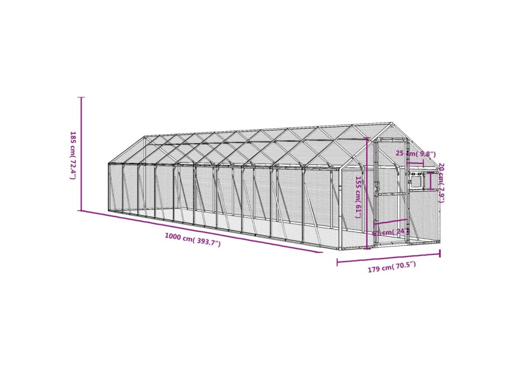 - Odolný materiál: Hliníkový kov je lehký a pevný. Je odolný proti korozi díky samoochranné oxidové vrstvě. Tato ptačí voliéra má robustní hliníkovou konstrukci a je vyrobena tak, aby velmi dlouho vydržela.